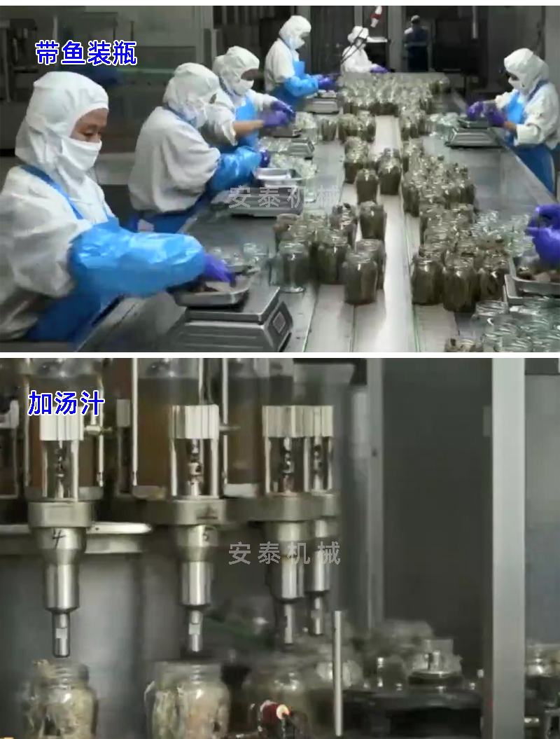 解凍——切斷——清洗——裝罐——蒸煮——加湯汁——真空封罐——高溫殺菌——噴碼——裝箱——碼垛