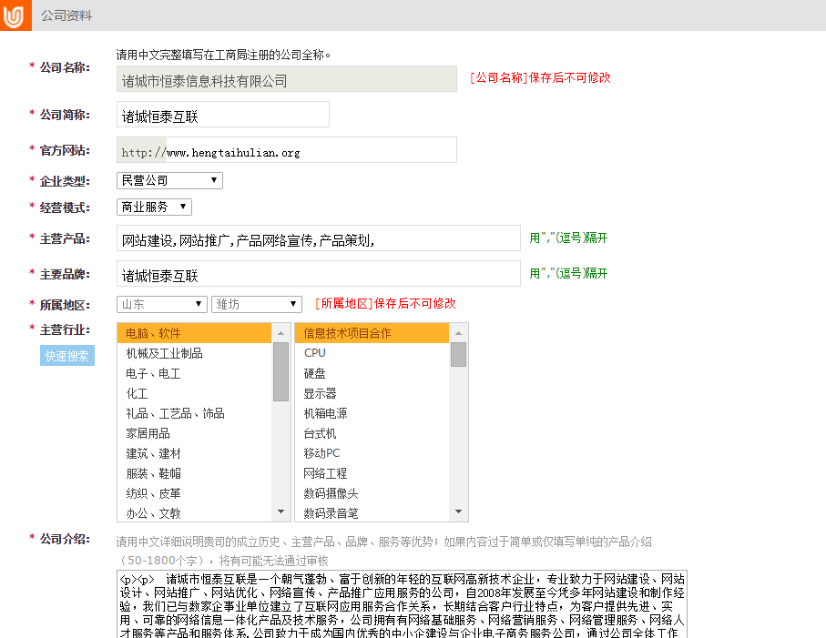 信息盡量不要反復修改,每次修改都將重新向B2B網站提交資料,審核需要時間,會給使用帶來不便。