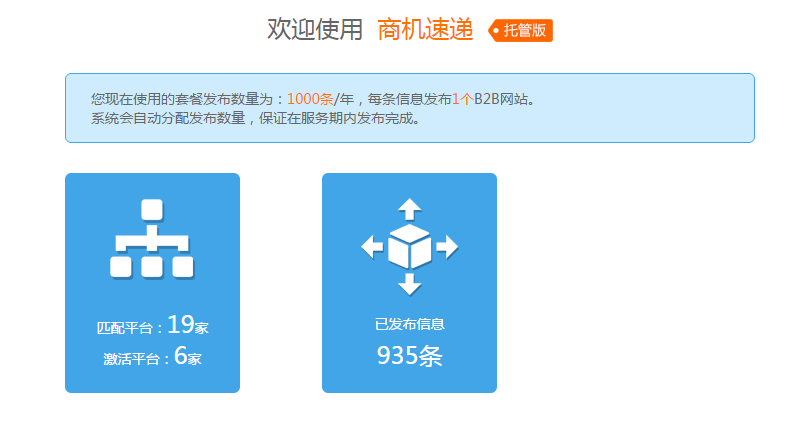 信息會自動導入易站通一周前發(fā)布的商機信息,系統(tǒng)全自動識別、發(fā)布此處信息,用戶無需任何操作,每條信息發(fā)布1個B2B網站,發(fā)布條數(shù)由商機速遞版本決定數(shù)量。